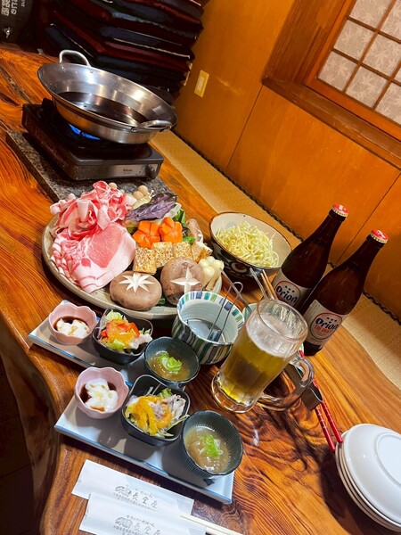 東村パイナップルアグーぱいトンのロースとバラ肉を使用したすき焼きコース!